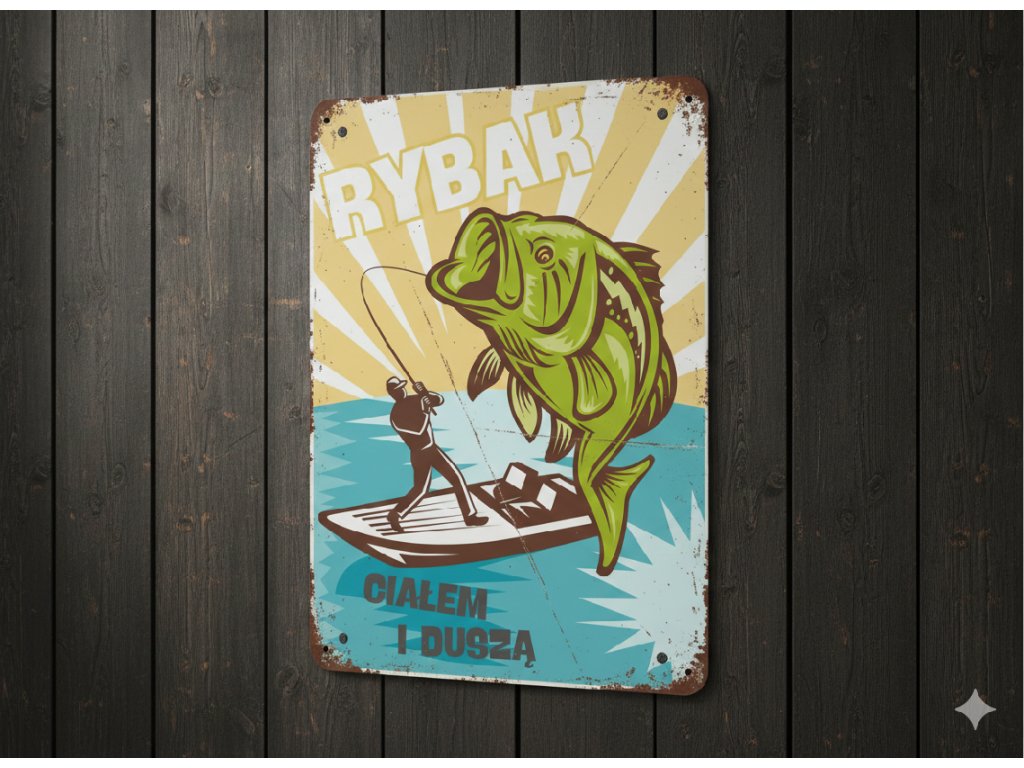 Tabliczka metalowa RYBAK CIAŁEM I DUSZĄ